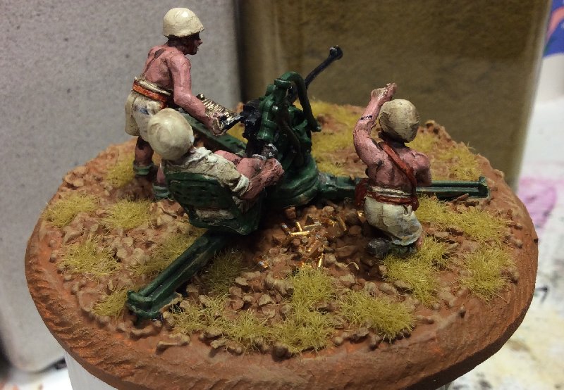 As requested for this year's challenge, PeterD and I decided to collaborate on an Italian AA gun for the Spanish Civil War. Peter was in charge of the assembling and painting and I was in charge of working on the base.