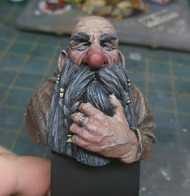 I went for the aged and weathered look on the dwarf. Very muted colors, and very desaturated in the end as well.