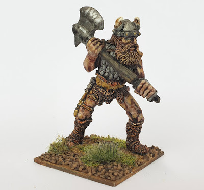 First up, Millsy's Millpond! The Mountain giant below is from GW in 1982, FF 12-2. I took this old fellah and gave him the treatment with a little contrast paints. So 30 points +10 for age for the challenge and 10 points for the mini, as he's more than 54mm tall.
