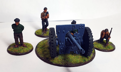 I have continued to work on the French Partisans that I plan on using for Bolt Action. This time, I have the start of a second squad, and a pre-war 75mm Howitzer for support.