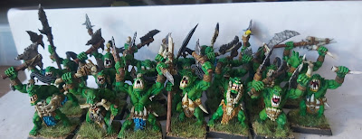 | All twenty Savage Orcs re-united. I need to find a suitable standard bearer and musician for these guys and potentially also a unit boss. |