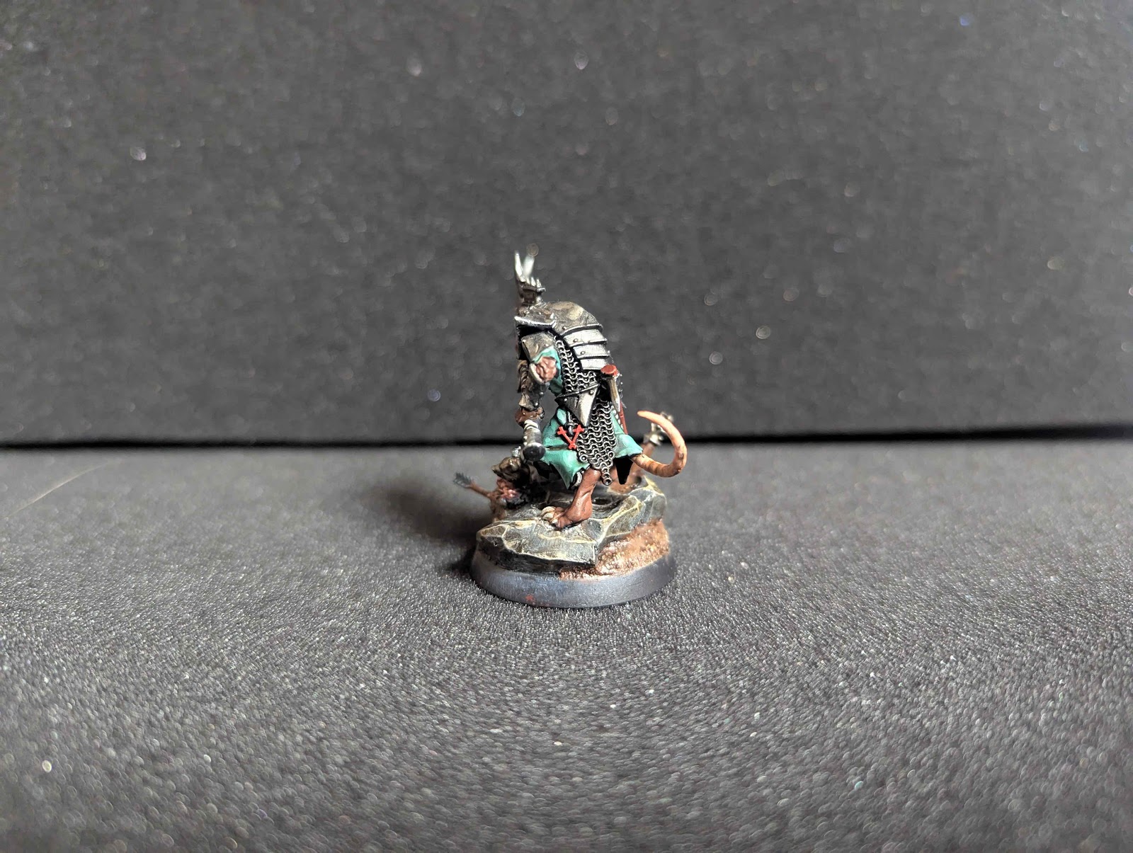 First up we have the GW model of the month, a Skaven storm vermin. It was a quick paint job. I realized there is a tiny bird skull on its waist in the process. Skull one down I think?