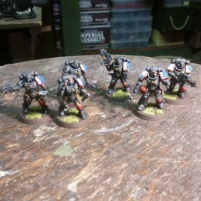 So here are my first seven models for the challenge. There will be a few more groups like this as I have always liked skirmish games and GW has really nailed it with Kill-team. The Primaris marines are my first official kill team squad. I could always use the 40k models iI have painted already, but what fun is that?! my wife would think I'm absolutely sick if I don't have a wish list for new models as well as piles of plastic and metal lying about.