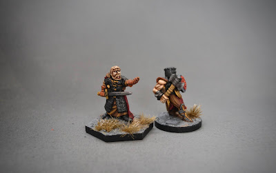 As befitting any Treasury, there are two loyal guardians of the treasure chests. I tried to mirror the chests by choosing a Midlam Miniatures fighter (with the beard and chainmail hauberk) and an Oldhammer warrior (yes, he's the chap with the bulging muscles).