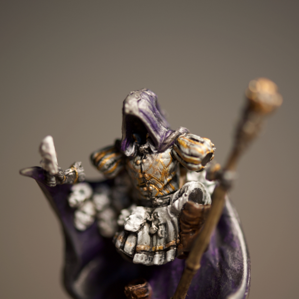 I think this is as good as one could hope for an execution of an invisible man figure. Some of the absences such as the one on the boot on the staff are very well done. The cloak is the biggest weakness of this figure -- it's just too big and bulky. The blouse is also rather fussy and was hard to detail. Finally all of the chalky masks were just a pain in the butt to manage -- oh well we have to take a shot at everything!
